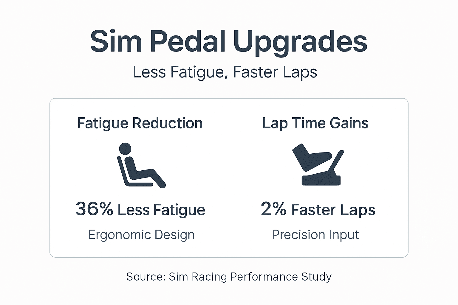 | Performance impact | Upgrading pedals improves lap times by 1 to 2% and cuts driver fatigue by 36% during endurance races. |